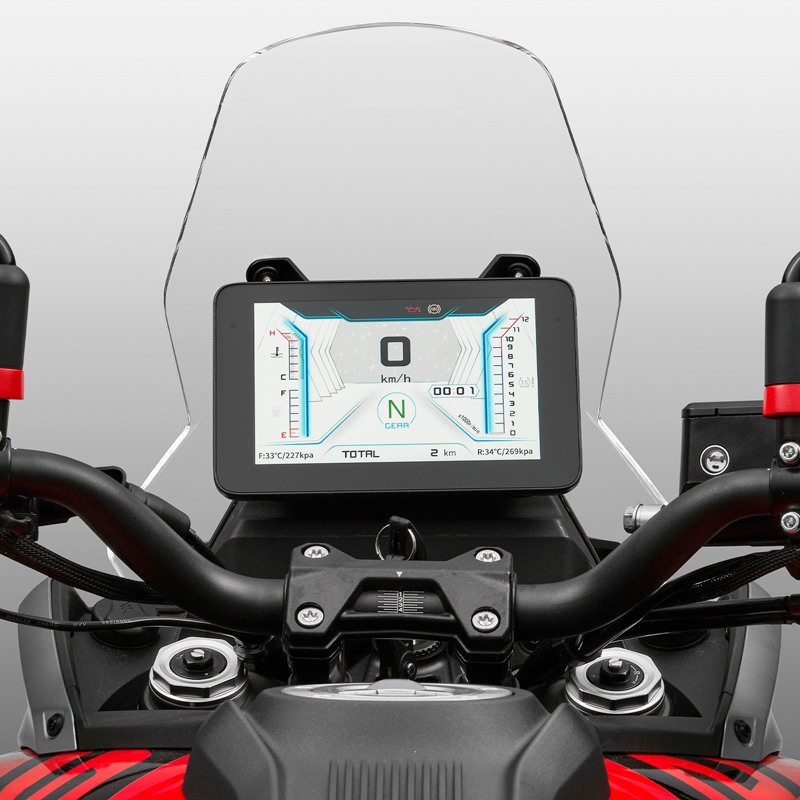 - Dashboard TFT 7’’ a color con conectividad Mirroring: La moto está equipada con una pantalla TFT de 7 pulgadas a color, que ofrece una visibilidad perfecta bajo cualquier condición de luz, gracias a su tecnología Day&Night. Además, con la conectividad Mirroring, podrás sincronizar tu smartphone con la moto y acceder a tus aplicaciones favoritas directamente desde la pantalla, proporcionando una experiencia de conducción más conectada y práctica.