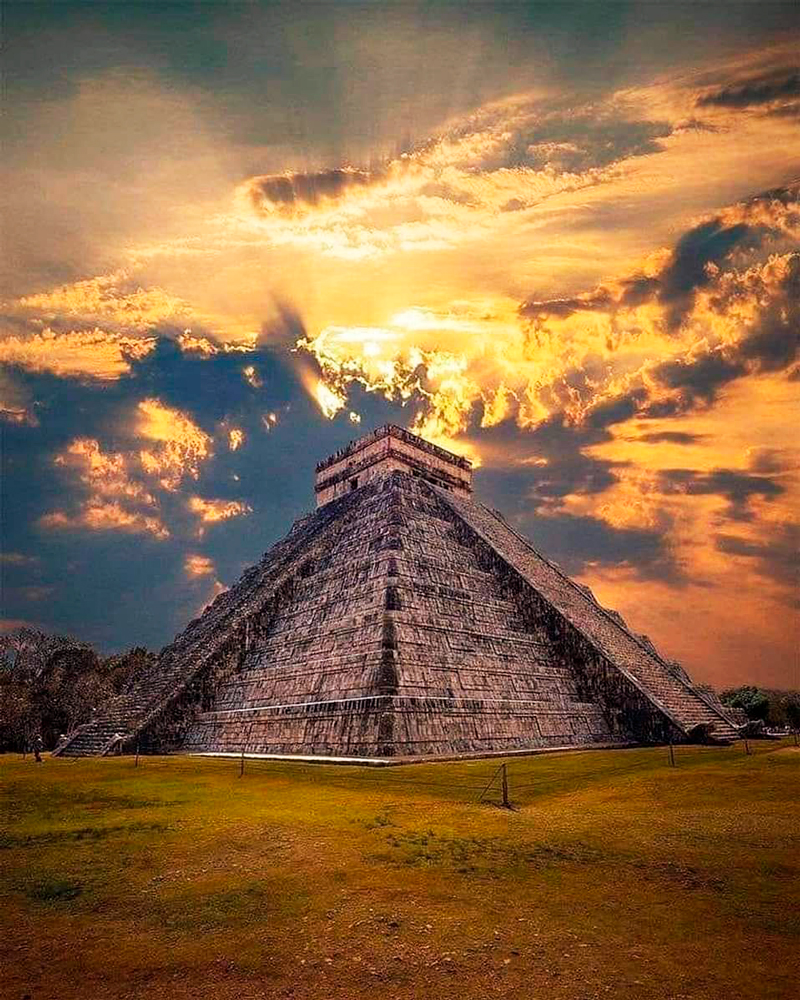 La pirámide o castillo de Kukulkán, es un templo y es el edificio principal de la ciudad de Chichén Itzá. Su estructura pone de manifiesto los conocimientos de los mayas sobre matemáticas, astronomía, geometría y acústica. Su perfecta simetría representa el calendario maya: 18 cuerpos (el número de meses, de 20 días cada uno) y 365 peldaños (días del año), cinco de los cuales se consideraban nefastos. Al pie de la escalinata sorprenden las cabezas de serpiente que hacen referencia a Kukulcán, la serpiente emplumada, una deidad maya. En otras lugares de los templos de Chichén Itzá también se hallan representaciones de algunas partes del cuerpo de una serpiente. El recinto arqueológico ocupa 15 km2, es Patrimonio de la Humanidad desde 1998 y constituye uno de los testimonios mejor preservados de la civilización maya. El estudio de los grabados y la disposición de los edificios ha revelado que los mayas conocían el ciclo de Venus de 584 días y el hecho de que cada 8 años retornase a la misma posición en el cielo, lo que se reflejaba a su vez en el calendario maya. El edificio que los españoles llamaron el Caracol era un observatorio astronómico. El emplazamiento de la ciudad, rodeada de selva y a más de 100 kilómetros de la costa, sume al visitante en una especie de ensoñación que lo conduce entre monumentos sensacionales: la cancha del Juego de Pelota, la calzada que lleva al Cenote Sagrado, las esculturas del dios Chaac, los relieves de la Casa de las Monjas o las cabezas de la Serpiente emplumada (Quetzalcóatl o Kukulcán). Estos son sus emplazamientos más destacados.