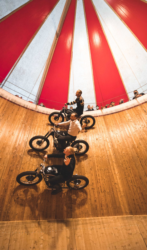 Los espectáculos de acrobacias superan los límites de la física de conducción y en el Motodrom original, el Muro de la Muerte más antiguo del mundo, se revivirá la gran tradición de montar en el Muro de la Muerte. Los fanáticos de la personalización obtendrán el valor de su dinero en el Área del Patrimonio, donde pueden inspeccionar una serie completa de motocicletas personalizadas y el equipo respectivo “.