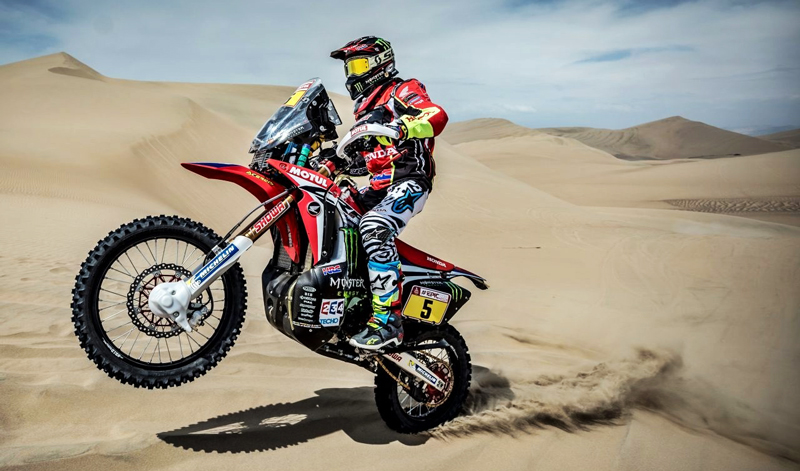 El piloto de Honda, Joan Barreda fue el ganador en la quinta etapa concluyendo con un tiempo de 3 horas, 54 minutos y 42 segundos, 10 minutos y 26 segundos después llegó Matthias Walkner y por detrás Kevin Benavides.