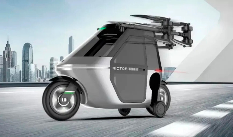 El Rictor Skyrider X1 destaca principalmente por su capacidad para transformarse en un dron, lo que lo convierte en un vehículo altamente versátil. Durante su funcionamiento en tierra, el Skyrider X1 se comporta como cualquier otro ciclomotor, pero pulsando un solo botón, se activa su sistema de despegue vertical (VTOL, por sus siglas en inglés) y se eleva en el aire. Este modo de vuelo cuenta con conducción y navegación autónomas, lo que hace que el vehículo sea aún más fascinante y fácil de controlar para el usuario.