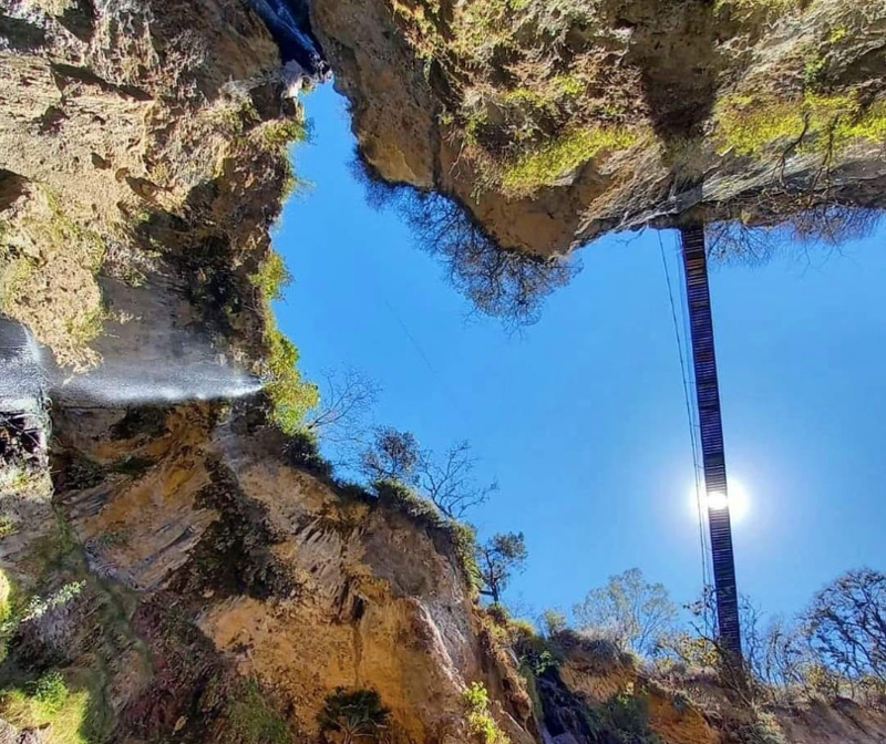 Es una caída de agua de cerca de 40 metros que se localiza muy cerca de Tonatico. En su caída en el risco, al difractarse el agua, ofrece el espectáculo de bellos arco iris, cuenta con un parque con un puente colgante de 60 m de largo desde donde se tiene una vista panorámica de la cascada, adicionalmente, ofrece un área para acampar y asadores, además de juegos infantiles, fuente de sodas, alberca, chapoteaderos y tobogán.