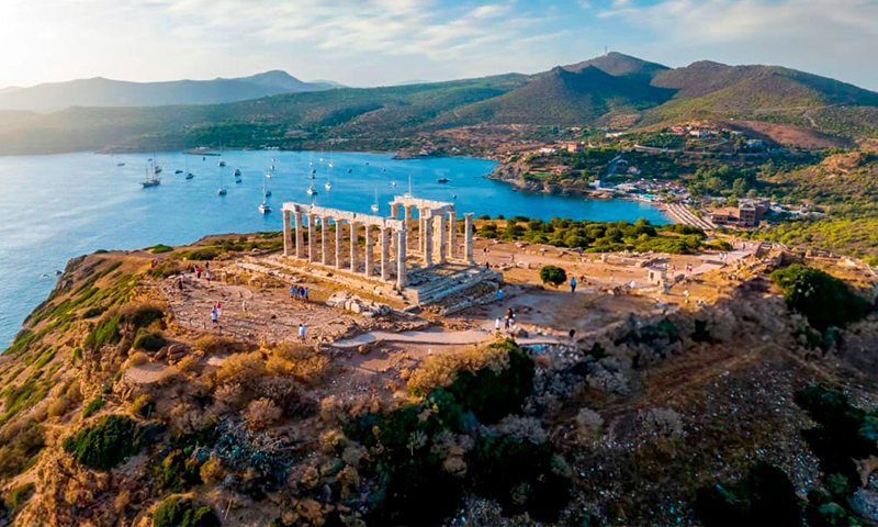 En Sounion te espera el Templo de Poseidón, al borde de un acantilado donde los atardeceres son pura poesía. Desde aquí, puedes tomar la ruta interior hacia Lavrio y luego enlazar con carreteras secundarias que zigzagean entre colinas verdes y pueblos blancos.