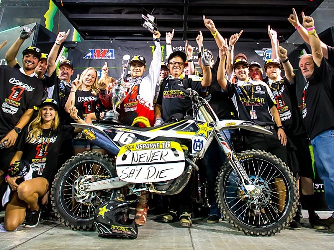 Eli Tomac demostró un eficiente desempeño en esta temporada y en Las Vegas no fue la excepción, sacó todas sus armas, pero Dungey estaba imparable y le fue posible alcanzarlo, y tras apretar en la última vuelta Ryan Dungey no podía creer que se había convertido en el campeón.