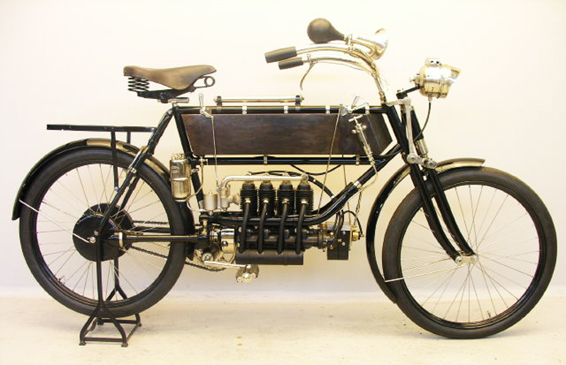 En diciembre de 1901 se construyó la primera motocicleta de un cilindro que incluía un motor de 133 cc, seguida en 1903 por una monocilíndrica de 188 cc pero ésta con eje. En 1904 se produjo una moto un poco más grande, de un solo cilindro de 300 cc. Pero la marca sobresalió en 1907 con una monocilíndrica de 244 cc, la cual fue la primera moto con un sistema de transmisión por correa de relación múltiple, que utilizaba una polea de motor de tamaño variable patentada. En 1909, los singles de dos velocidades tenían árboles de levas para abrir las entradas, en lugar de las válvulas “automáticas” anteriores.