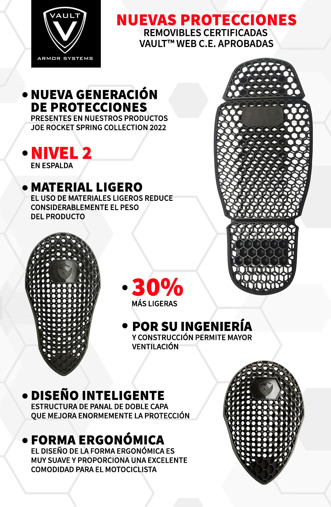 Sus refuerzos de aramida en hombros y codos la hacen más resistente a la fricción, lo que hará que te sientas cómodo y seguro.