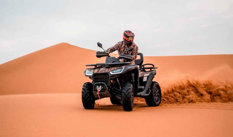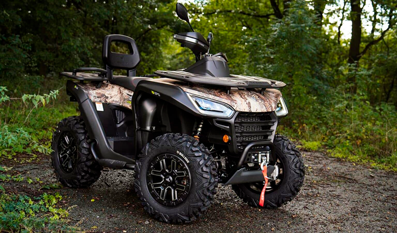 El pistón dispone de un doble chorro de aceite para su rápida refrigeración, ideal tanto si nos estamos moviendo a muy baja velocidad, o si estamos exigiendo el máximo al motor cargados, con un remolque, o un terreno de difícil acceso. Sus 23 litros de depósito nos permitirán no estar pendientes de la autonomía. Mención especial para la tracción integral con bloqueo diferencial delantero, o la transmisión mediante variador CVTECH, con el que nos olvidamos de las cajas de cambio manual. En cuanto a la amortiguación, esta ha sido especialmente desarrollada para aportar estabilidad y al mismo tiempo, funcionar tanto cuando el vehículo va vacío como a plena carga.