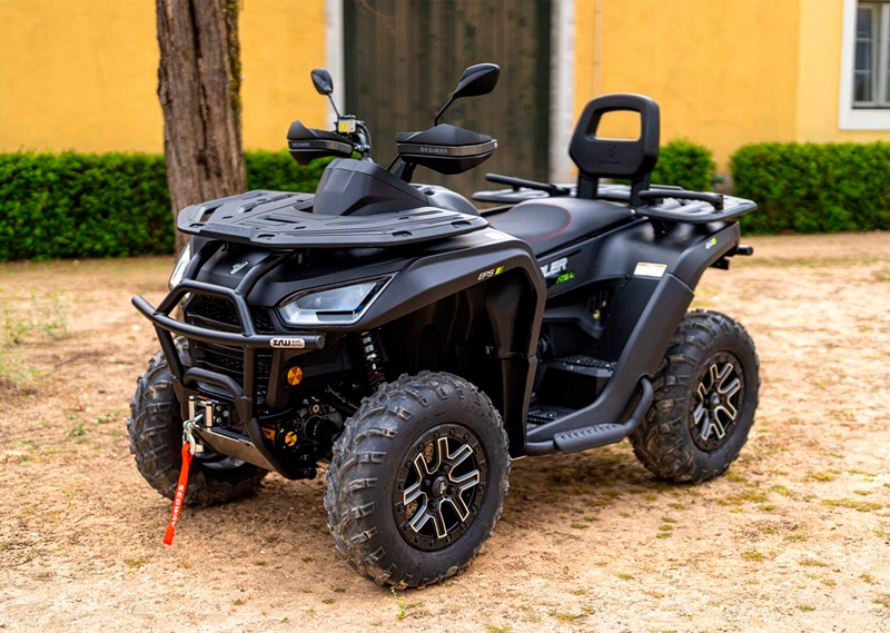 Dentro de la gama SSV también está disponible el conocido Segway Villain SX10 X Black Edition. Aquí ya hablamos de un vehículo cien por cien recreacional, pensado para sacarte una sonrisa desde el momento que le das al contacto. Cuenta con un gran número de accesorios de origen. Todo ello incorporado en un vehículo con chasis de acero de aleación ligera, movido por un motor de 1.000 cc y 105 CV (93,5 Nm). Dotado de tracción integral seleccionable con bloqueo diferencial delantero, caja de cambios automática, suspensión de largo recorrido controlada por amortiguadores de gas, un depósito de 44 litros, modos de conducción, una pantalla táctil de 10,4″ y un peso en vacío de solamente 835 kg, es un vehículo que te puede servir tanto para divertirte como para ayudarte en el trabajo.
