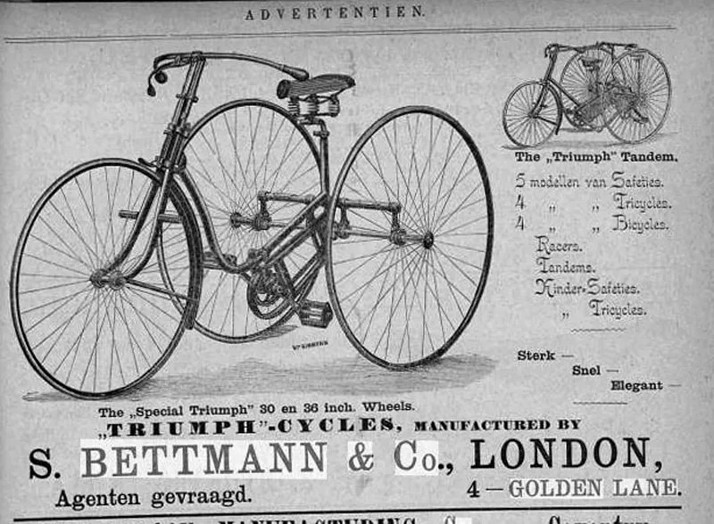 En 1887, Bettmann fundó la “S. Bettmann & Co. Import Export Agency” en la ciudad de Coventry, con la intención de importar y distribuir bicicletas y máquinas de coser. Poco tiempo después, decidió producir sus propias bicicletas bajo la marca Triumph, apostando por un nombre que evocara éxito y victoria, valores que deseaba asociar a su empresa.