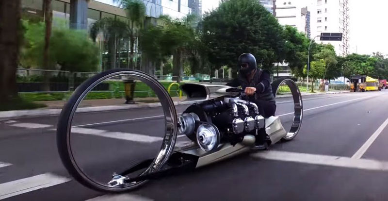 Hemos visto desfilar muchas motos originales, y muchísimas más combinaciones inimaginables, pero… ¿una motocicleta con neumáticos gigantes y un motor de avión? Increíble, pero cierto. La sensacional idea fue del expiloto brasileño de Fórmula 1 Tarso Marques, quien actualmente se dedica a la personalización de motocicletas. Esta personalidad ha tenido éxito rotundo, pues es tetracampeón mundial en esta modalidad.