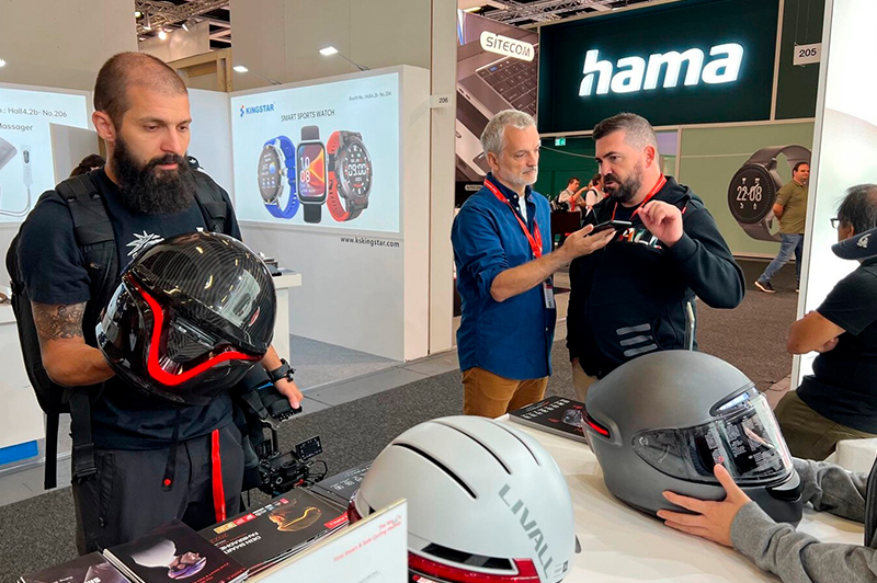 Ahora da un salto a las motos con el MC1 Range, convirtiéndose en un casco en fibra de carbono y poliestireno expandido y que pesa poco menos de 1 kg y medio. Tiene características exclusivas como: señales lumínicas de dirección, un sistema de seguridad que alerta de las posibles caídas a los servicios de emergencia y conectividad Bluetooth, entre otros.
