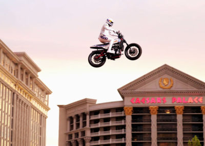 Para el tercer y último reto, fue necesario que Pastrana se dirigiera al mismo sitio en donde Evel Knievel lo había hecho, justo frente a las instalaciones del Caesars Palace. Durante su presentación, Knievel, logró impactar a todos los asistentes, sin embargo, durante el aterrizaje de la misma, tuvo un fallo que le costara la una contusión cerebral que lo dejara en coma por un mes, además de la fractura de pelvis, cadera, manos, muñecas y tobillo.