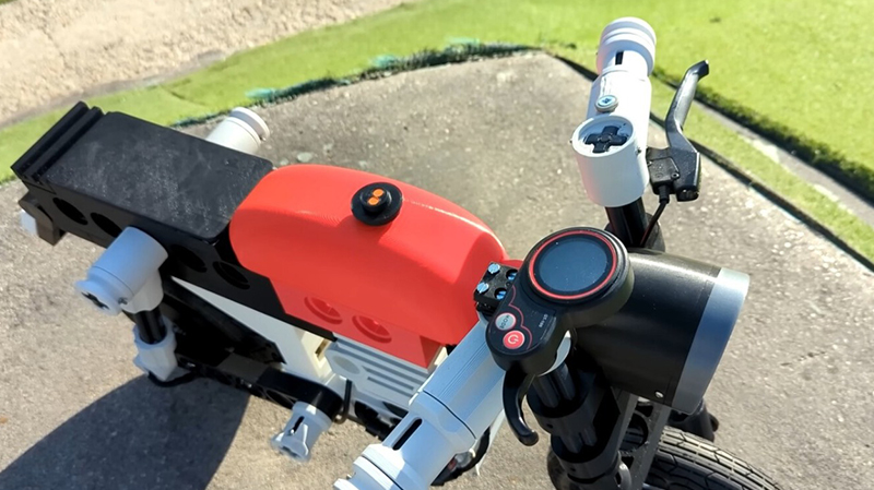 Una vez con todo el material (hasta un día de impresión por pieza, y tiene 74), empezó a ensamblar el proyecto. Hasta creó su propia pieza Lego en forma de motor. El resultado final es una moto completamente funcional, con acelerador, freno, luces de posición, matrícula y limitada a 25 km/h (aunque, según dice, puede llegar hasta 50 y 60 km/h).