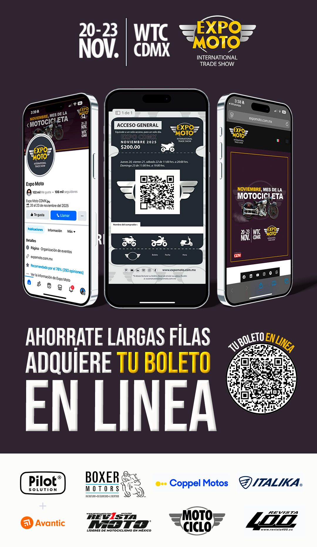 2016-05-28: Este correo electrónico y, en su caso, cualquier fichero anexo, contiene información exclusivamente dirigida a su destinatario. En caso de haber recibido este correo electrónico por error, se ruega notifíquese inmediatamente esta circunstancia a info@expomotonews.com Al mismo tiempo EXPO MOTO le recuerda que sus datos forman o formarán parte de un fichero registrado, propiedad de la EXPO MOTO. Usted tiene derecho de acceso, oposición, rectificación y cancelación a estos datos que deberá ejercer mediante escrito a la dirección anteriormente citada.Expo Moto es una marca registrada. Los logotipos de patrocinadores fueron proporcionados por la misma marca. Queda prohibido el uso de las imágenes difundidas en este correo. © 2013 EXPO MOTO Todos los derechos reservados.