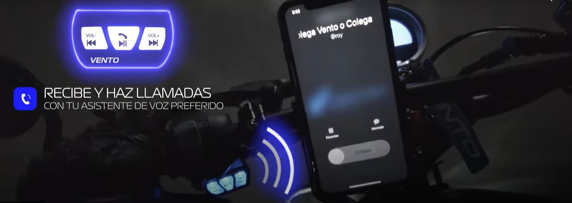 Las motocicletas Vento 2023 y 2024 incorporan el innovador Centro de Comando, diseñado para ofrecer un control absoluto de la conectividad sin soltar el manillar. Este sistema permite gestionar la música, responder llamadas y activar asistentes de voz con facilidad, garantizando una experiencia más intuitiva y segura. Además, funciona como el enlace principal con la nueva gama de cascos VenTec.