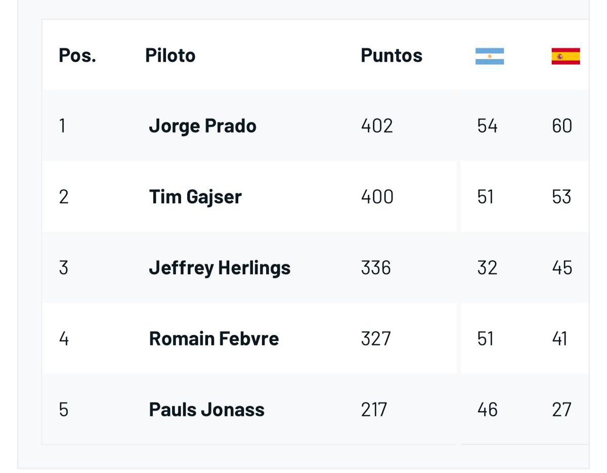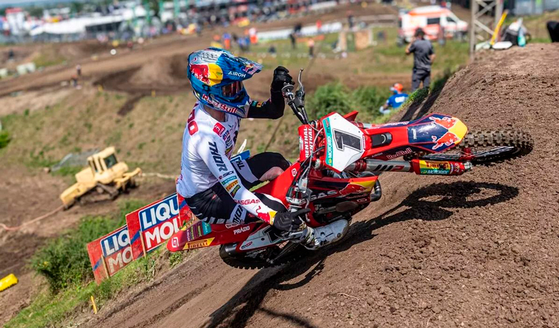 La placa roja sigue errante entre la Honda HRC de Tim Gajser y la Red Bull GasGas Factory Racing de Jorge Prado. El vigente campeón tuvo una caída en los compases de la primera manga, terminando 7º. Sin embargo, pudo recuperarse en la segunda manga con una contundente victoria que le catapultó al tercer escalón del podio, reduciendo así el daño en puntos causado en la primera carrera.
