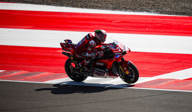 Bagnaia no tuvo una salida fácil, pero fue capaz de mantener la cuarta posición en la primera curva. El campeón del mundo después se fue largo en la curva 16 y perdió dos posiciones. Pecco gestionó muy bien la carrera a partir de ese momento, detrás de los dos pilotos italianos. Cuando su compañero de equipo se cayó, Bagnaia decidió atacar y superó primero a Bezzecchi, a seis vueltas del final, y poco después a Morbidelli. A partir de allí se distanció de sus rivales y pudo cruzar solo la bandera de cuadros en tercera posición.