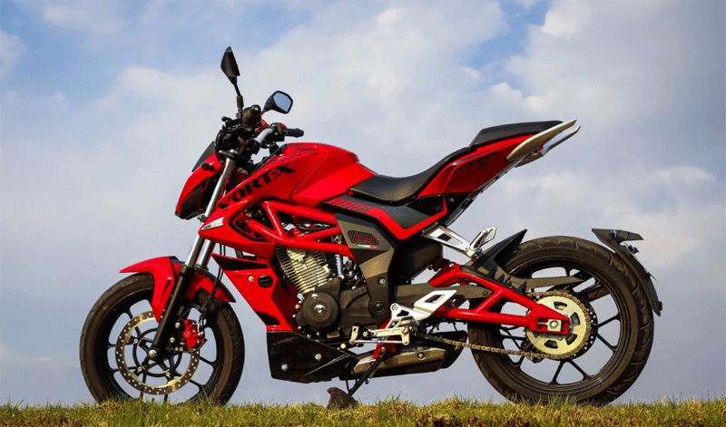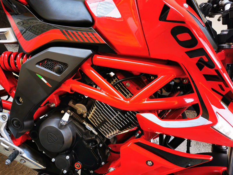 Entre tanto, el motor sigue con la misma estructura interna en general, sólo que cambia las dimensiones del cilindro evidentemente y unos pequeños reajustes en la potencia y par. De esta manera, la nueva Vort-X 250 integra un mono-cilíndrico de 250 cc con 2 válvulas y un sistema de distribución SOHC. La caja es de 6 velocidades mecánicas y el arranque es eléctrico.