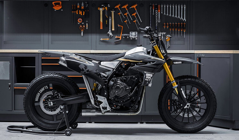 Con todas estas modificaciones, la moto resultante es más ligera y maniobrable que nunca. En orden de marcha, la flat tracker basada en la Ténéré 700 pesa solo 158 kg, lo que la hace aún más ágil y lista para cualquier terreno, aunque con una clara inclinación hacia las calles y los circuitos de flat track. El trabajo de Winston Yeh y Rough Crafts no solo ha conseguido transformar una Yamaha Ténéré 700 en una flat tracker espectacular, sino que también ha dado lugar a una de las motos más llamativas y funcionales de su tipo. Con sus líneas agresivas, el manillar ancho, las suspensiones de alta gama y las ruedas impresionantes, esta preparación resalta por su capacidad de fusionar el estilo clásico de las flat trackers con la tecnología moderna y la fiabilidad que caracteriza a la Ténéré 700.